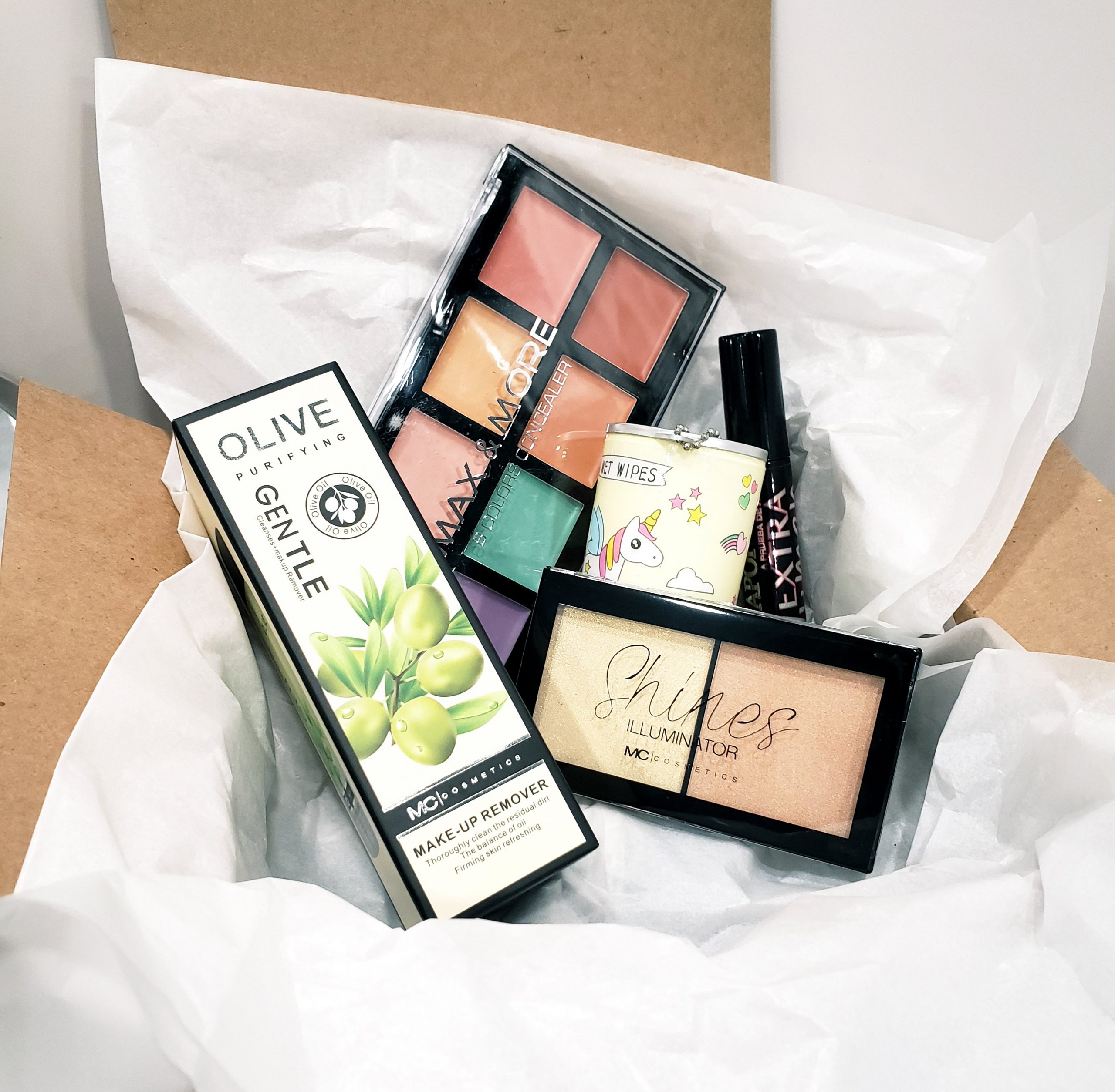 Nhoa Box es una caja con productos de belleza y cuidado personal, recibes entre 4 y 5 productos en su mayoría marca MC cosmetics.